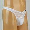 定価:2200円 33%OFF ¥1470 清潔感のあるホワイトカラーが魅力のメンズ用Tバックです♪繊細なレースと伸縮性のあるストレッチ素材を組み合わせ、上品でやさしい印象に仕上がっています!軽やかな着用感とフィット感を両立し、日常使いにもぴったりです♪フロントにあしらわれたリボンがさりげないアクセントになっています!バックスタイルはすっきりとしており、シンプルな美しさを演出します♪こだわりのディテールが光る一枚です!
