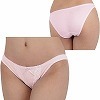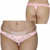 定価:1540円 33%OFF ¥1030 光沢感のあるピンクの生地に白のレースとフリルをあしらった愛らしい日本製Tバック(ピンク)。サイドは紐を結んで留める仕様で着脱楽々です♪