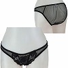 定価:1650円 33%OFF ¥1100 素肌が透けて見える黒の極薄生地を白レースで飾った日本製フルバック。色気たっぷりなシースルー生地のフロントに、白の花飾りをつけたリボンをあしらいフェミニンに仕上げた一枚です♪