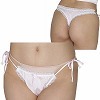 定価:1540円 33%OFF ¥1030 艶やかな光沢のある白生地に同色のフリルとレースを飾り甘く仕上げた日本製Tバック(白)。2段に施されたフリルレースが甘くて可愛い!サイドは紐を結んで留めるタイプなので着脱楽々です♪