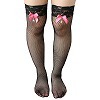 定価:2090円 36%OFF ¥1330 ピンクのリボンチャームが付いた大人可愛い網ストッキング。●黒×ピンクカラー●細かな網目から覗く肌がセクシー●レース&リボンチャームがキュートさをプラス●安心の日本製。私服にもコスプレにも相性バッチリのガーターストッキングです。