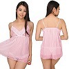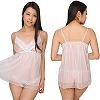 オープン価格 OPEN ¥3960 透け感のあるシースルー生地にレース装飾を施した、ふんわり可愛いベビードール(ピンク)。白とピンクのカラーリングが乙女な気分を盛り上げる♪日本製