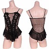 オープン価格 OPEN ¥3890 艶やかで美しいサテンと透明感のあるレースで仕立てた小悪魔風ベビードール(黒)。フロント両サイドは色っぽい前開き仕様!シースルー生地と華やかな刺繍&レースで小悪魔に演出します。