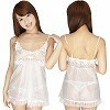 定価:5500円 33%OFF ¥3670 艶やかな光沢生地がラグジュアリーなひと時を演出する日本製のベビードール(白)。ふんわり広がるシフォンのような質感とフリルレースの甘さが大人可愛い♪