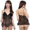 オープン価格 OPEN ¥3960 透明感のあるシースルー生地にフロントリボンとレースの装飾を施した、大人可愛いベビードール(黒)。華やかな胸元に視線が釘付け!上品な透け感と、ふんわりエアリーなレースで甘く誘惑する小悪魔風ベビードール。日本製