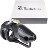 定価:22000円 70%OFF ¥6520 M男の射精管理に!初めてでも挑戦しやすい、高級ブラックシリコン製のペニス貞操帯。あなたのSM願望を叶えます!南京錠付きの本格派、組み立て式ペニス貞操帯です。竿と玉袋をリングに通した後、本体を被せて連結!バンドとピンで固定し、錠でロックすれば完成です。排尿や入浴もOK!硬い金属やプラスチックのものより生活しやすく、緊急時に切断することも可能。金属探知機に感知されないプラ製のキーも付いてます。
