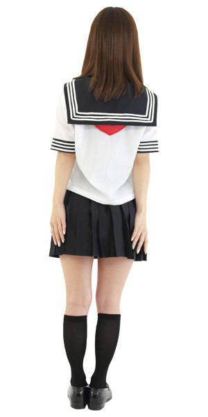 涼しげな夏服仕様の半袖タイプ!セーラー襟や袖のオーソドックスな3本ラインでリアル感を演出!ミニ丈のプリーツスカートがちょっぴりセクシーなスクール系コスチュームです。