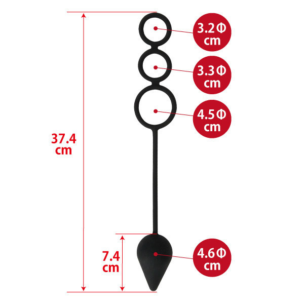 仕様 : パッケージ:20.0×13.0×5.5cm 本体:全長:37.3cm 内径小3.1φcm・中3.1φcm・大4.5φcm プラグ部分:7.3×4.6φcm