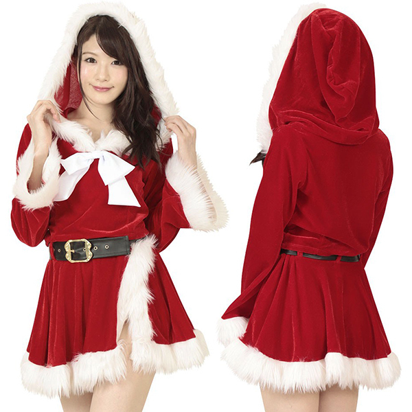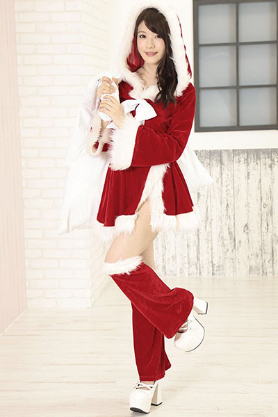 ふんわりファーで雪化粧♪フーディートップス&スカートのラブリーサンタのコスプレセット。
