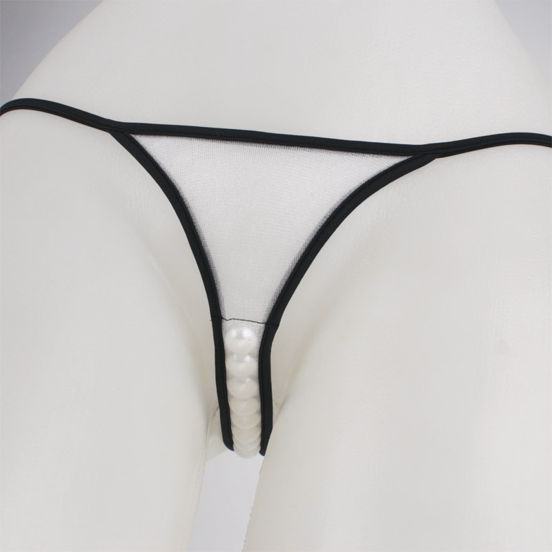 連なる8つのパールとメッシュ生地の透け感にドキドキするGストリングショーツ(M)。●ホワイトメッシュ素材●ショーツ全体を細めの黒ストリングで縁取り●クロッチにパール入り●後ろはセクシーなTバック仕様●日本製。普段甘えベタな女性も、これを履けばちょっぴり大胆になれるセクシーな大人ランジェリーです。