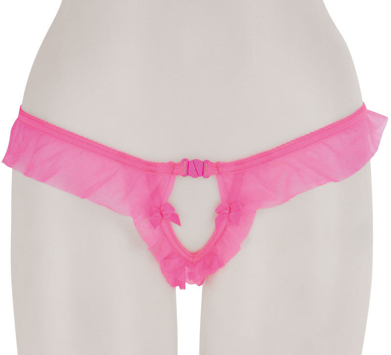 クロッチに大人の秘密♪ひらりと舞うピンクシースルーフリルのオープンショーツ。