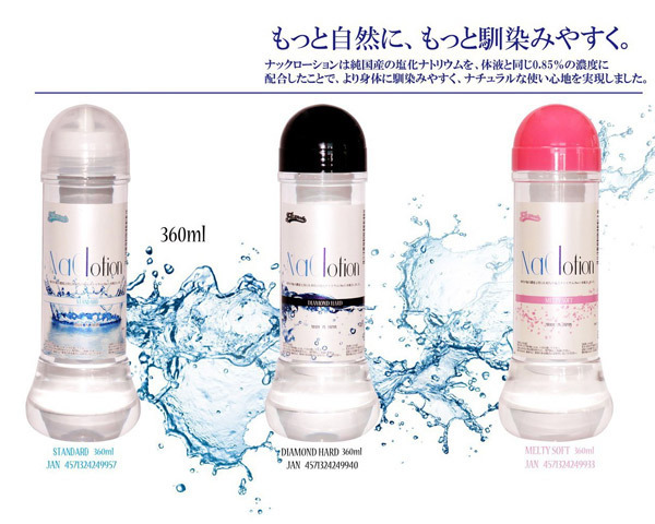 肌によく馴染む自然な使い心地が特徴!オナニーにラブタイムにと、オールマイティに使えるクリアローション。●ナックローション・スタンダードver●お得な360ml入りボトル●程よく絡む中粘度タイプ●純国産の塩化ナトリウムを、体液と同じ0.85%の濃度に配合。ナチュラルな使い心地を実現した、安心安全な日本製のローションです。