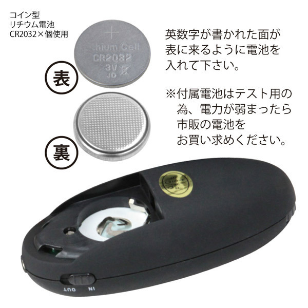 仕様 : パッケージ:16.5×16.5×5.5cm 本体:プラグ7.5×2.6×2.2cm リモコン全長8.2cm 電池:ボタン電池(CR2032)×1個使用