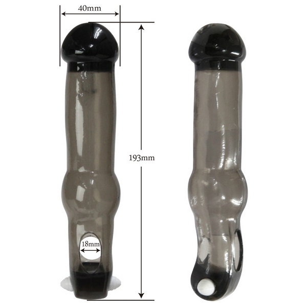 大きく膨らんだキノコ型ヘッドでロングに変身!極厚スキンで竿全体+玉袋をガッツリ締め付けて持久力を高めながら、振動快感も得られる男性補助グッズ。
