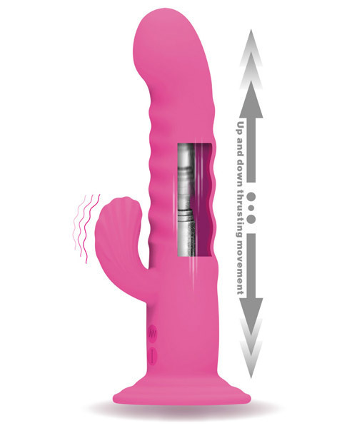さらに、強力振動するクリバイブが中からも外からも同時に刺激!振動とピストンは個別に操作可能です。