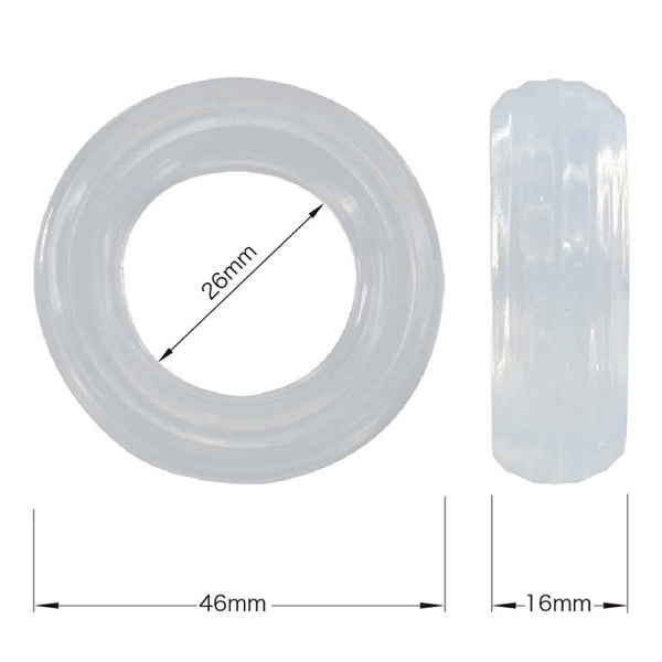 ●シリコンエラストマー素材●厚さ16mmのドーナツリング●リング外径46mm、内径26mm●直径35〜40mmサイズに対応●勃起力UP&早漏防止に最適●中折れ防止も強力サポート●USA医薬品基準認証品。