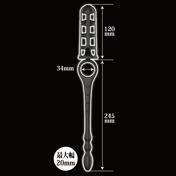 仕様 : パッケージ:26.0×15.0×5.0cm 本体:サック全長12.0cm リング内径3.4cm アナルプラグ全長24.5cm