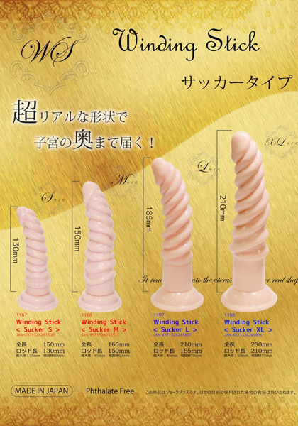 快感の渦に巻き込む肉感フォルム!凸凹ねじれ形状の吸盤付きディルド「ワインディングスティック サッカーXL」。純日本製の素材のみを使用した艶めかしく刺激的な見た目の快感ディルド。壁でも床でもピタッと吸着してフリーハンドで楽しめる吸盤タイプ!細めの亀頭がスムーズな挿入を促します。渦を巻いた刺激的なボディが膣内をかき乱しながら子宮まで快感を届けます。