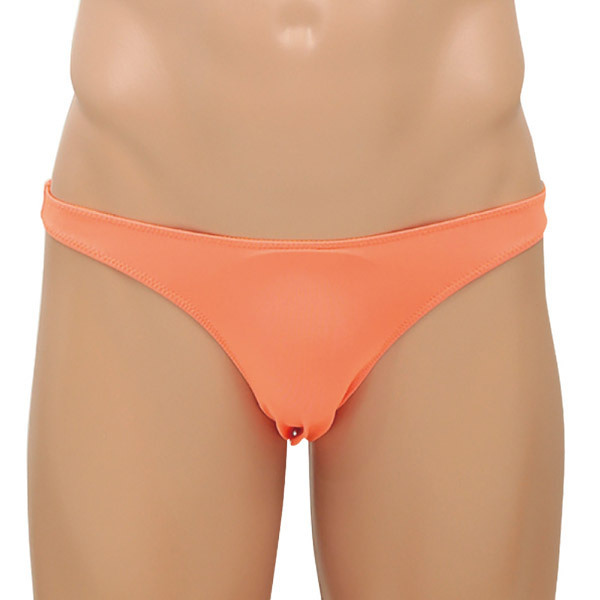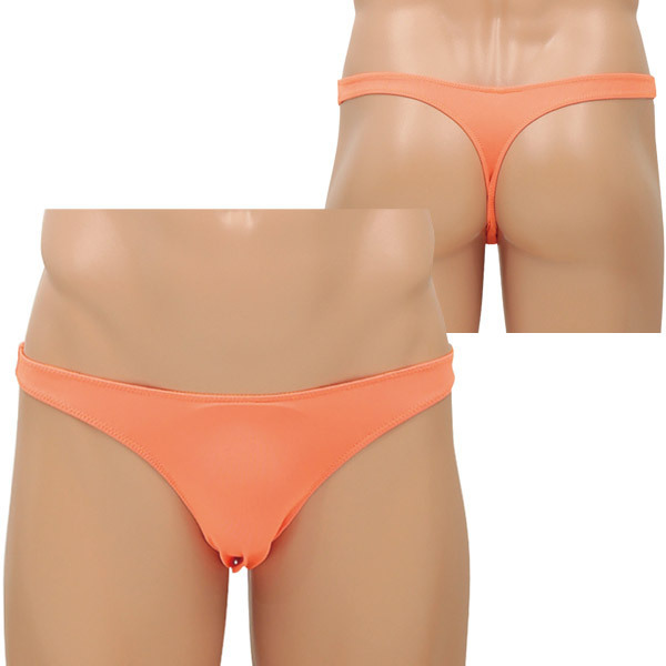<EROX>シンプルスタイルでセクシーに魅せる大人のメンズランジェリーシリーズ!ネオンオレンジのローライズTバックショーツ「ピースメーカー」。スパンデックス5%、ポリエステル95%。