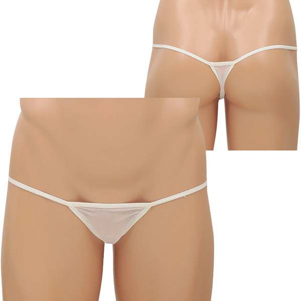 <EROX>メッシュデザインでセクシーに魅せる大人のメンズランジェリーシリーズ!ホワイトカラーのサイドストリングTバックショーツ「ニューナンブ」。スパンデックス5%、ポリエステル95%。