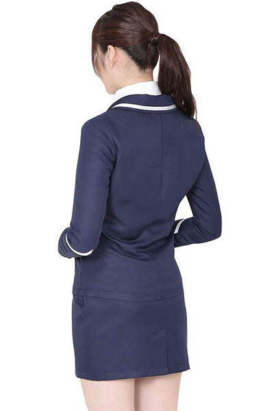 スカートはミニ丈仕様で少しだけセクシーな仕上がりに♪実際の車掌さんの制服同様ボタンはきっちり3つでとめられていて、更に襟や裾の部分が車掌さんらしさを演出してくれます。