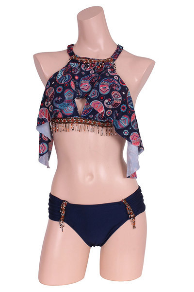 デザインがお洒落!深みのあるネイビーのペイズリーとエスニックビーズの組み合わせで誰よりも印象的に。