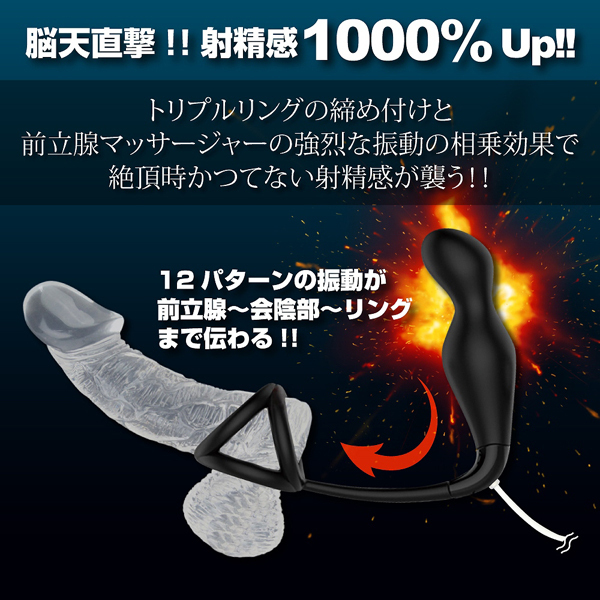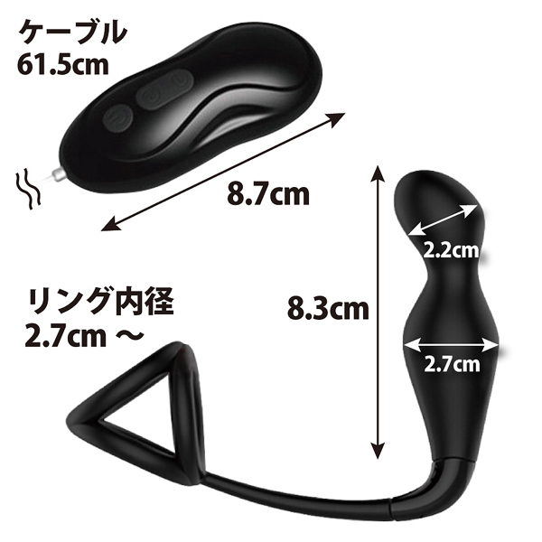 本体の大きさは8.3cmと少し小ぶりですが、12パターンもの強力振動を搭載!アナル内部でエネマグラが振動することで前立腺を刺激し、そこからコードが回り込むようにして会陰やペニスへと振動を響かせつつ、トリプルリングの締め付けで強烈な相乗効果を生み出します♪絶頂時には全身を電気が走り抜けるような射精感が襲いかかり、アッという間に果てていることでしょう。