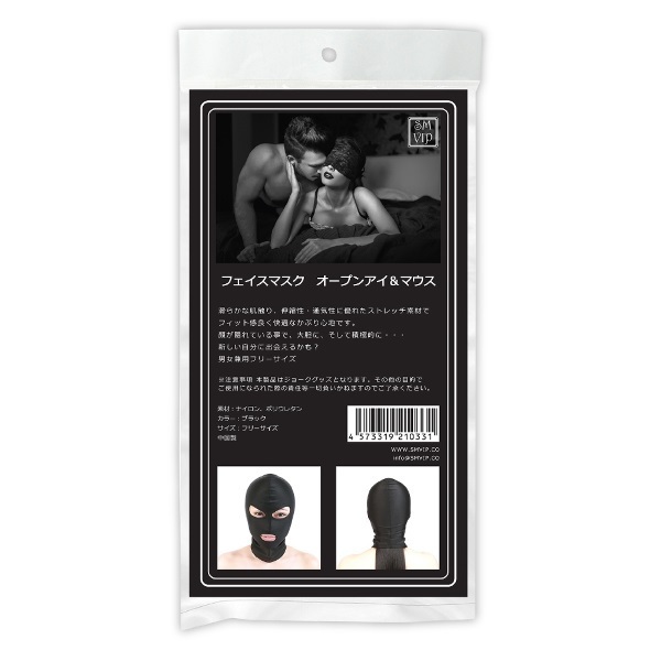 お手軽に羞恥心を煽れる♪男女兼用の「<SM VIP>フェイスマスク オープンアイ&マウス」は、目と口が開いた全頭タイプのマスクです。
