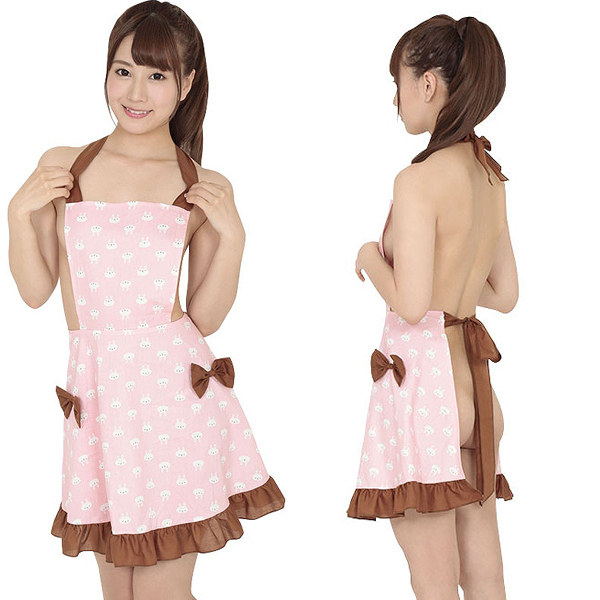 ウサギのイラストが描かれたフリルたっぷりの可愛いエプロンコスチューム。ピンクとブラウンの乙女心くすぐるスウィートなカラーリングと、ふりふり揺れるフリルが可愛い!日常のスパイスとして、裸のままエプロンを身に着けて彼をお迎えすれば、いつもと違う貴方のセクシーな姿に彼もドキドキすること間違いなし!勿論、コスプレとしてだけでなく通常のエプロンとしてもお使いいただけます♪