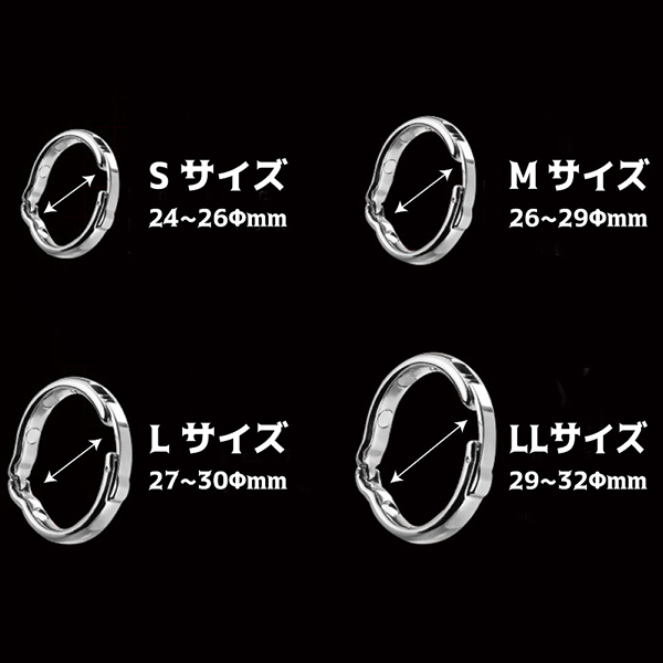 内径2.6cm〜2.9cmの男性を対象に、6つの磁石で血流をUP!持久力や勃起力を高めるほか、亀頭の周りで包皮をまとめることで包茎のお悩みにもアプローチ♪洗練されたデザインは尿道を締め付けすぎることがないため排尿時に邪魔になる心配もなく、長時間の使用でも快適な装着感を実現しました。