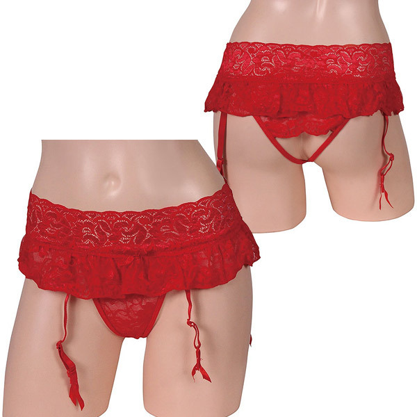 HOME > ランジェリー > ガーターベルト付 > セクシャルな魅力満載オープンショーツ一体型ガーターベルト レッド