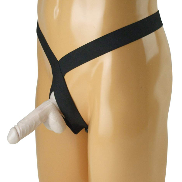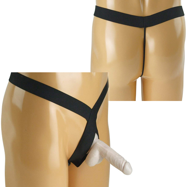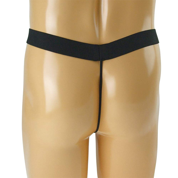 伸縮性のある黒の太ベルトで男性器を支える日本製Tバック。会陰やお尻を刺激するゴム球付きで、細めの紐がお尻の割れ目に食い込むセクシー仕様!