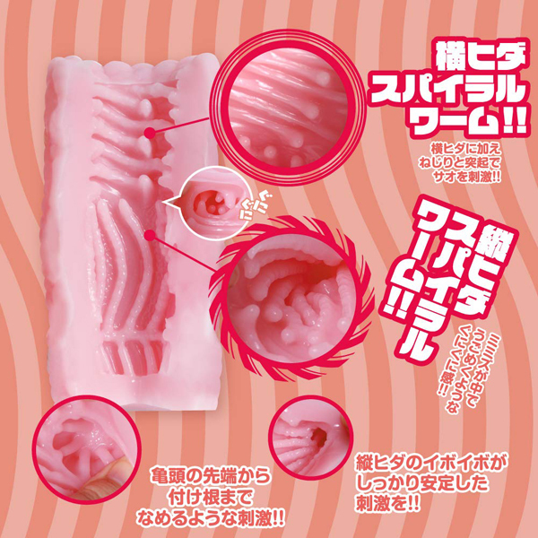 先端から根元まで、螺旋を描くように捻じれたスパイラルワーム構造が絡み付く!プニッと柔らか質感の非貫通オナホ(日本製)。ミミズが内部で蠢くような感覚がクセになる!触手好きにはたまらないソフトタイプのオナホです。ローション付