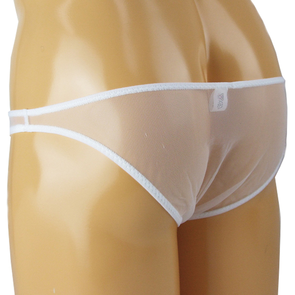 清潔感のある白の極薄生地でお尻を優しく包み込む日本製ハーフバック(メンズ用)。通気性がよく肌馴染もいいため穿き心地抜群!素肌の透け感でセクシーにアピールしながらも機能性にもこだわった一枚。