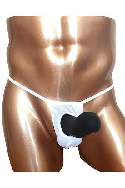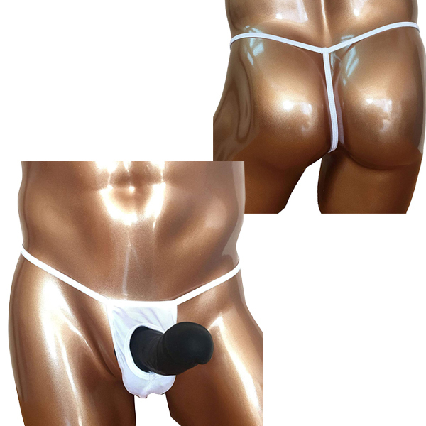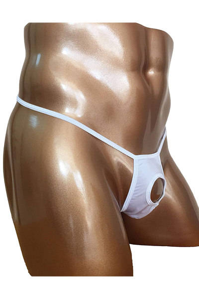 露出する開放感!男のシンボルを魅せつける竿出し仕様のメンズ用Tバック(白)。前後どちらも露出度高めのセクシーで開放的なデザイン!締め付け感の苦手な方は是非どうぞ♪優しく手洗いするか、網ネットに入れて洗濯してください。