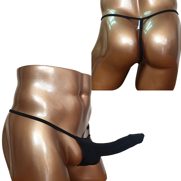 下半身に優しくフィットするサオ収納ポケット付きメンズ用Tバック(黒)。魅力溢れる逞しい貴男の身体を際立たせるセクシーデザインで男の色気を際立たせる!洗濯の際は優しく手洗いするか、網ネットに入れて洗濯してください。
