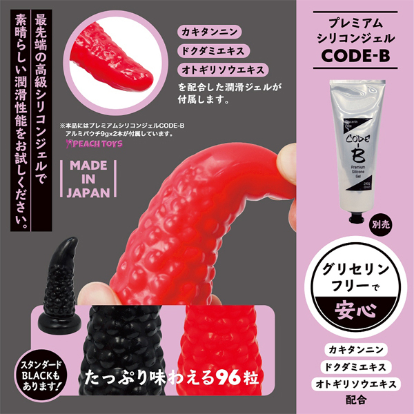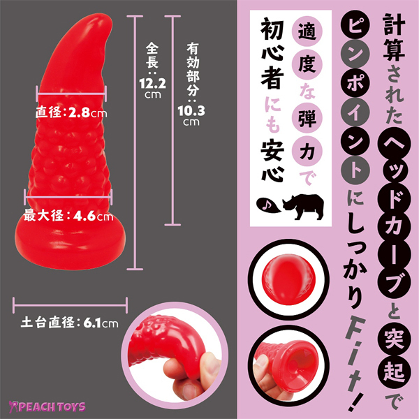 絶妙なカーブ形状が好きなポイントに適確にフィットする!96粒のイボ突起が付いた日本製ディルド。ツノを立てたように尖った先端と計算されたカーブデザインが奥をピンポイントに刺激!弾力と張りのある硬め素材が強烈な快感をもたらします♪