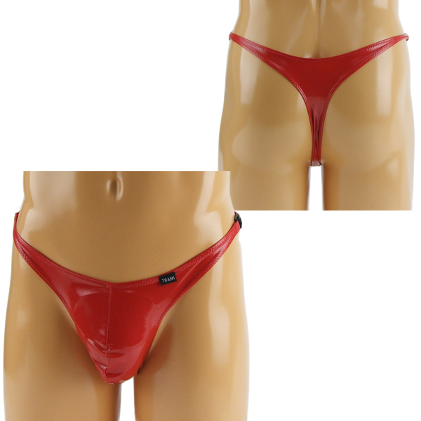 HOME > ランジェリー > メンズ ショーツ・ビキニ > メンズ エナメル両サイドワンタッチバックル付きTバック レッド