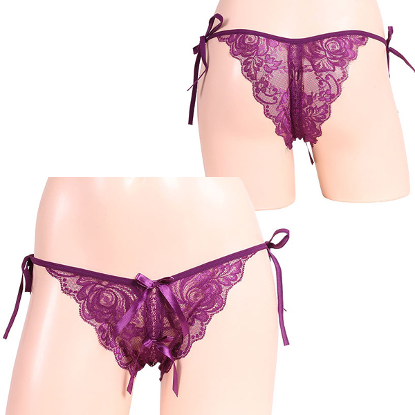 HOME > ランジェリー > オープン ブラ・ショーツ(穴あき) > 女らしさ満開サイドリボンオープンショーツ パープル