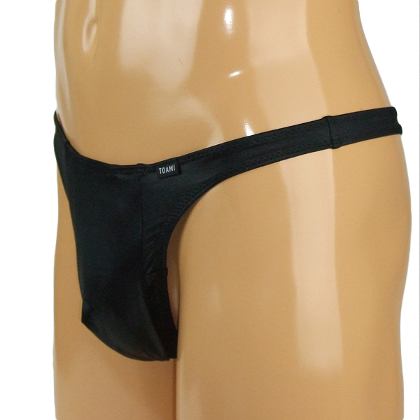 伸縮性が高く穿き心地抜群!日常使いできるシンプルな黒無地の玉袋付きTバック。滑らかな手触りの光沢生地を使用!下半身を心地よく包み込んでくれる一枚◎Mサイズ、日本製