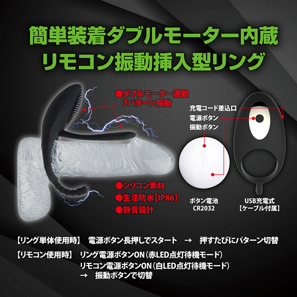 電源はUSB充電式でリモコン操作が可能♪簡単に装着できてクリへの振動はもちろん、ペニスと共に挿入するサブシャフトも振動するのでアナルへもアプローチできるというトリプルギミックを搭載!中も外も男性自身も振動を味わいながらプレーが楽しめて、男性自身を締め付けながら増強を促す効果も♪各種バイブレーションがリモコン操作できるので振動変化もお楽しみいただけます!7パターンの振動機能にUSB充電式でケーブル付属。