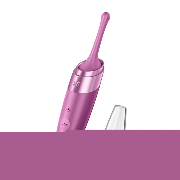 クリや乳首を集中刺激!40種類のピンポイント振動で気持ちいいところへ的確にアプローチできる「サティスファイヤー トワリングデライト(ローズピンク)」。