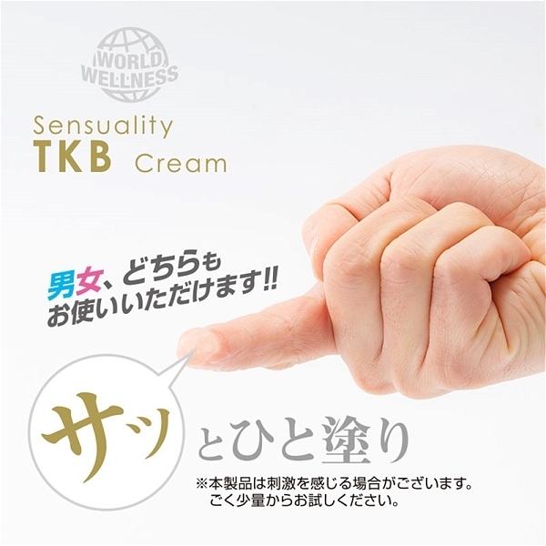 TKB官能クリーム(Sensuality TKB Cream)の登場です。このクリームは男女兼用の、TKBをより感じやすくするためのクリームです。男女ともに塗布することでじんじんとし、感じやすいTKBへと変化していきます。この製品は国内の工場で適切な安全管理のもとに作られています。安心してお使いください。<成分>潤滑剤、安定剤、水、香料