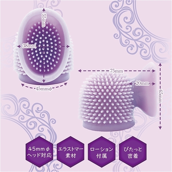 とろける快感、やわらかアタッチメント「オルガポム」電マのパワーを存分に感じられる、可愛らしいパステルカラーの45mmヘッド対応アタッチメントです。手毬のようなころんとした形に、余すところなくついた柔和な突起が、感じるポイントを優しくブラッシング。