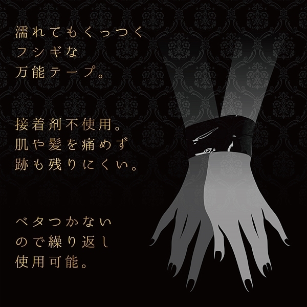 SMプレイの必須アイテム<ボンデージテープ>!気分で色を変えたいお客様の声にお応えし、女体を彩る業界最多の7色をラインナップ!ノリを使わない万能テープで服や髪・肌を傷めず、お手軽カンタン拘束プレイ!●濡れてもくっつく、不思議な万能テープ科学の力でテープ同士が吸着。ベタつかないので片付けも簡単。髪や肌、繊細なグッズやテーブルにも安心して使えます。