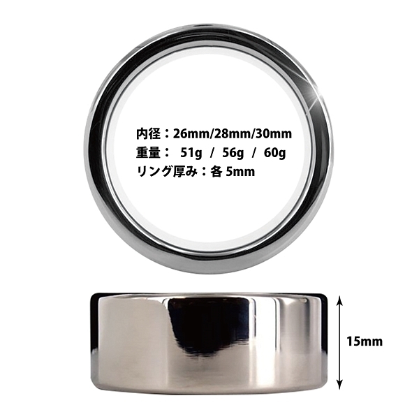 男の機能をアップさせスタイリッシュに拘束感を味わえるメタルコックリングシリーズ滑らかな形状で美しい鏡面加工とメタルならではの硬度と加重で貴方の怒張をよりクールに!内径の異なる3サイズ展開で発売中!●内径28mm