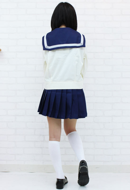 青いリボンが爽やか!キュートな長袖セーラー服コスプレ。