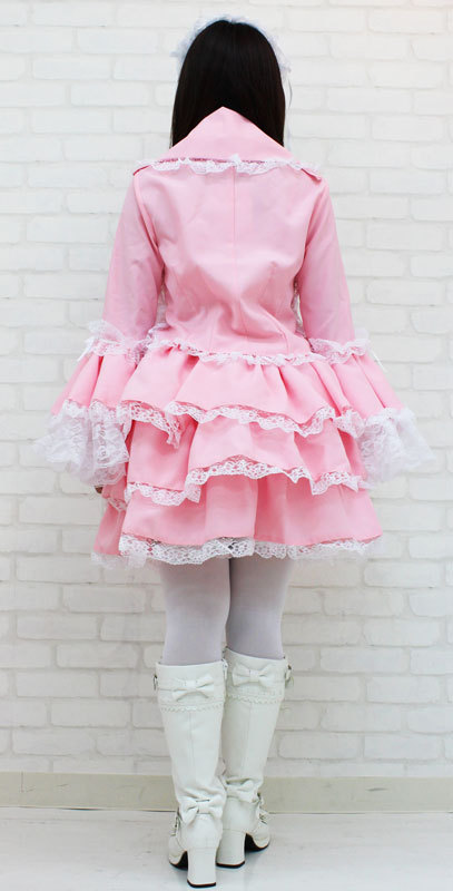 セット内容:上着(前ボタン)・スカート(ウエスト部分ゴム、スカート3枚仕立て、裏地付き、チュールパニエ付き)・付け衿(ボタンにて着脱可)・ヘッドドレス