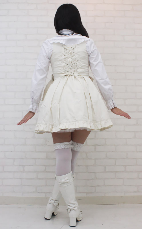 セット内容:ジャンパースカート(横ファスナー、後ろ編み上げシャーリング、パニエ内蔵)・ブラウス(前ボタン、後ろ編み上げシャーリング)