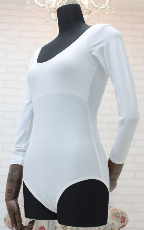 眩しいほどの純白カラーは、まさに清楚系!ロングスリーブのレオタード(BIGサイズ)。